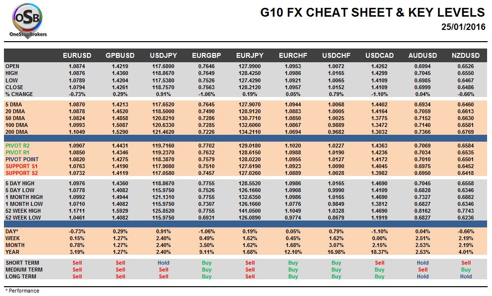 OSB Daily G10 Currency Pairs Cheat Sheet & Key Levels for January 25.