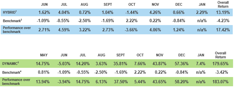 Click IronFX January Performance Overview to download the January full performance report of the Hybrid and Dynamic Strategies.