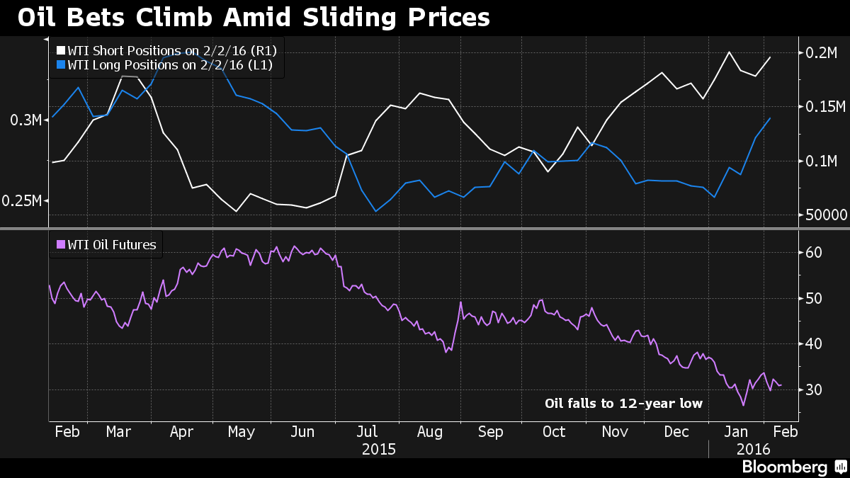 Money managers’ combined short and long positions in WTI, rose to 497,280 futures and options contracts in the week ended Feb. 2., according to the CFTC. Shorts increased by 9.7 percent to near the all-time high reached three weeks ago, while longs, or bets that prices will gain, climbed to the highest level since June, the data shows.