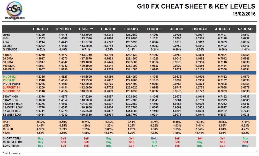 OSB Daily G10 Currency Pairs Cheat Sheet & Key Levels for February 15.