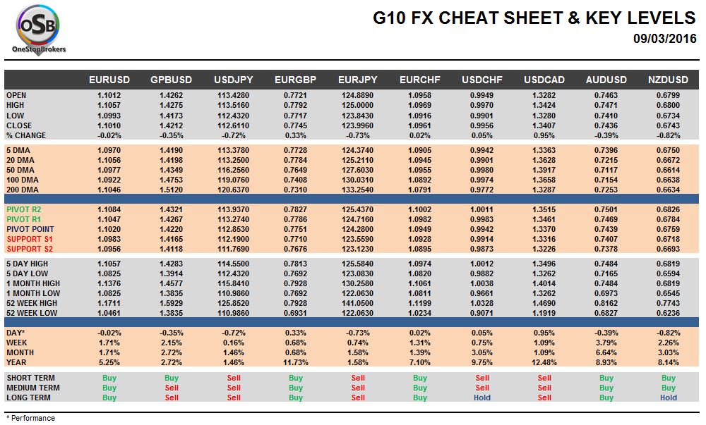 OSB Daily G10 Currency Pairs Cheat Sheet & Key Levels for March 09.