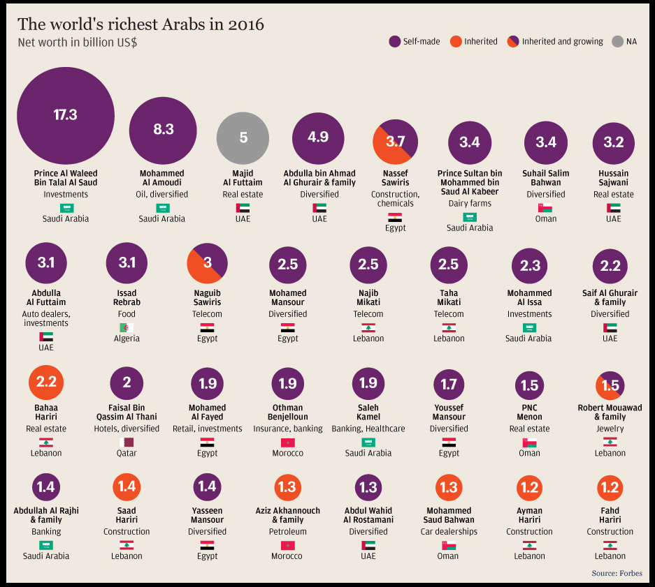 Below is a graphic showing the world’s richest Arabs in 2016.