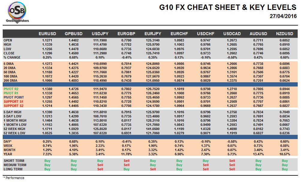 OSB Daily G10 Currency Pairs Cheat Sheet & Key Levels for April 27.
