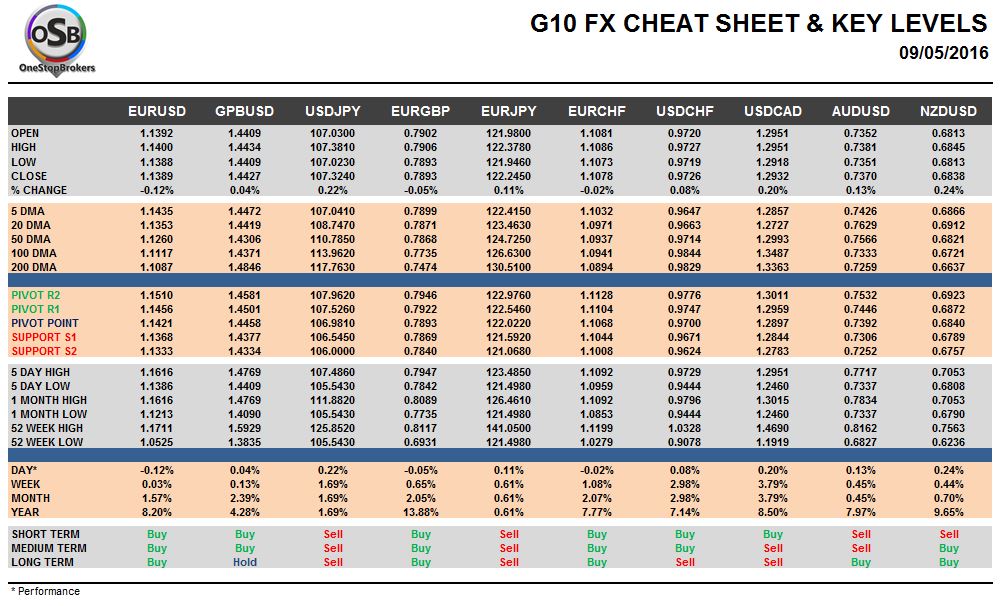 OSB Daily G10 Currency Pairs Cheat Sheet & Key Levels for May 09.