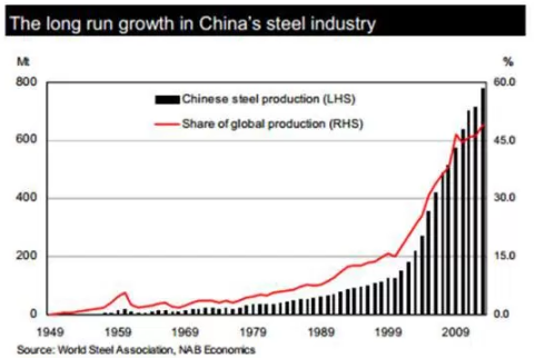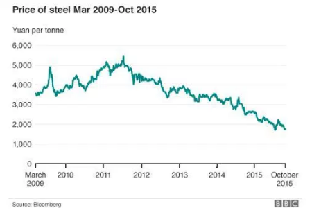 China, as with so many other things, was the epicenter of this delusion. In response to the 2008-2009 financial crisis it borrowed more money than any other country ever, and spent most of the proceeds on infrastructure and basic industry. It’s steel-making capacity, already huge by 2008, kept growing right through the Great Recession, and now dwarfs that of any other country.
