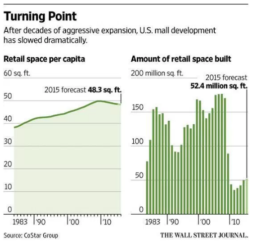 In the US, retailers built new stores at a pace that vastly exceeded population growth, apparently on the assumption that consumers would keep borrowing in order to buy ever-greater amounts of semi-useless stuff. And now bricks and mortar retailing is suffering a mass-die-off.