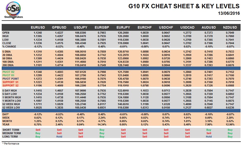 OSB Daily G10 Currency Pairs Cheat Sheet & Key Levels for June 13.