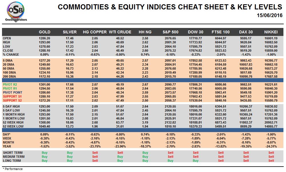 OSB Commodities & Equity Indices Cheat Sheet & Key Levels for June 15.