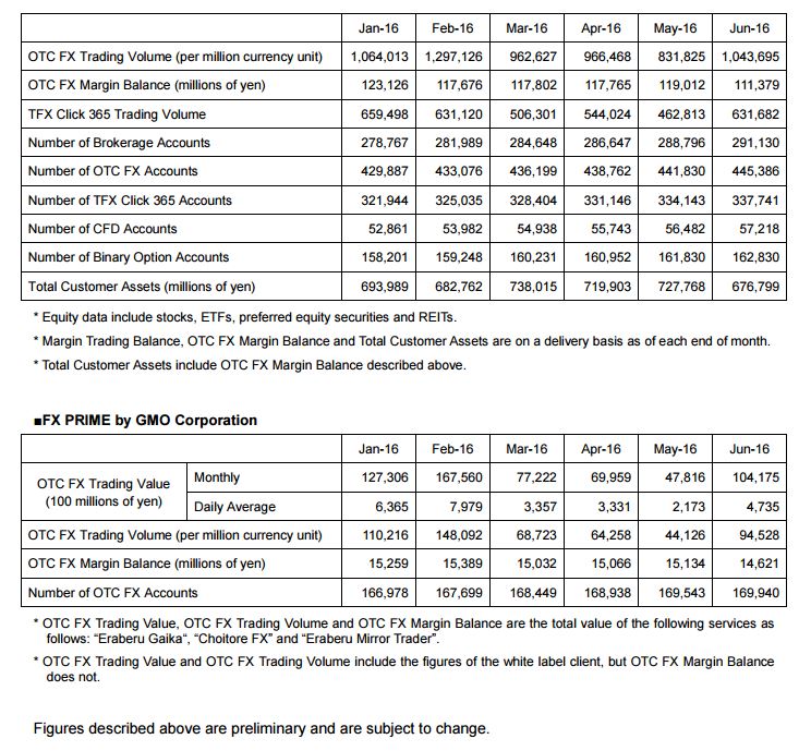 GMO CLICK Holdings, Inc. today released the following monthly preliminary report of its subsidiaries for June 2016.