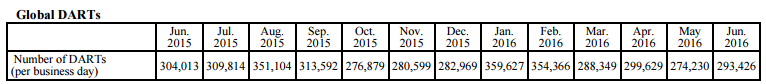 1. DARTs stand for Daily Average Revenue Trades meaning the number of trades and transactions per day which generate revenue.