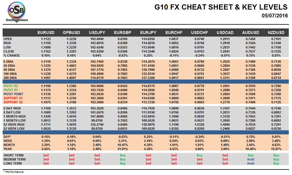 Tuesday, July 05: OSB G10 Currency Pairs Cheat Sheet & Key Levels