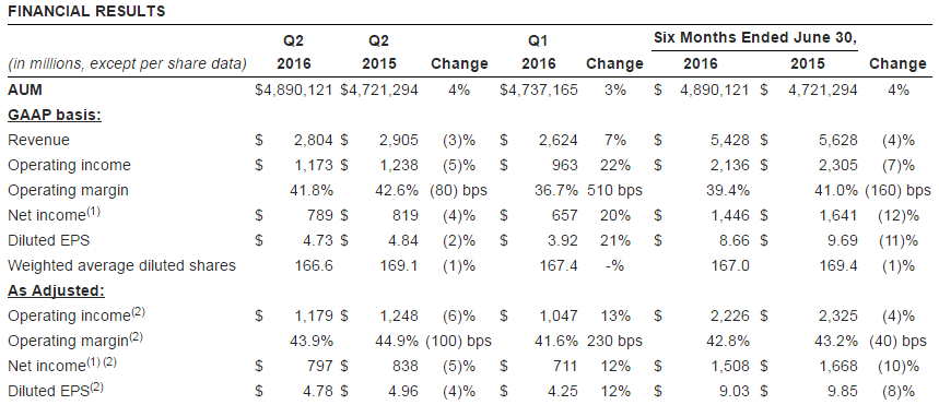 BlackRock, Inc. (NYSE:BLK) today reported financial results for the three and six months ended June 30, 2016.