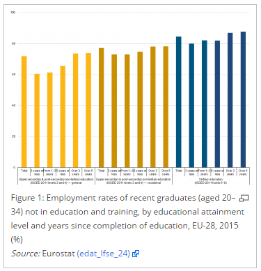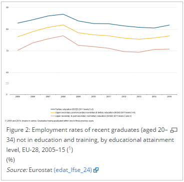 Below is an overview of European Union (EU) statistics related to the employment rates of young people (those aged 20–34 years) who have recently graduated from either upper secondary or tertiary levels of education (as defined by the international standard classification of education (ISCED)). It provides information on the transition from education to work and analyses the access to the labour market among recent graduates (those who have graduated within the last one to three years).