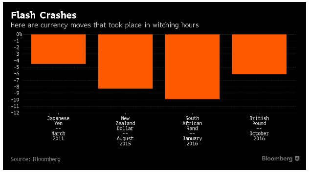 “Movements like this recent pound crash will likely happen again at some point in time,” said Peter Soh, head of foreign exchange in Singapore at DBS. “Looking back, say five years ago, moves of this intensity were unheard of.”