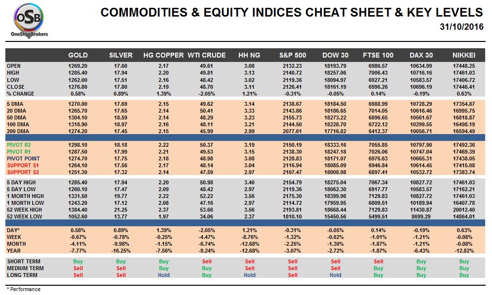 OSB Commodities & Equity Indices Cheat Sheet & Key Levels for October 31.