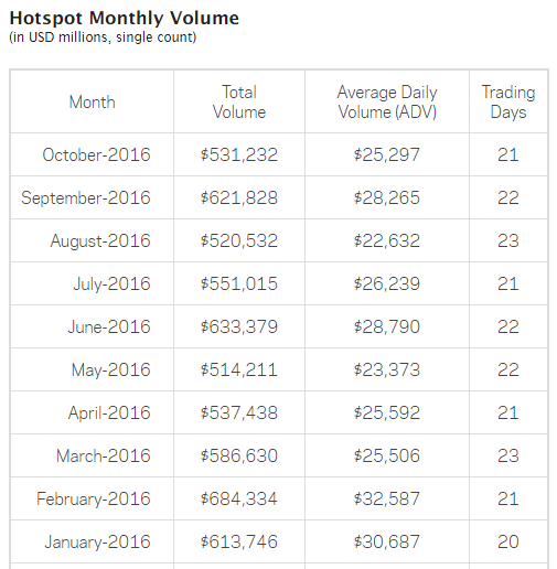 According Hotspot, the Average Daily Volume (ADV) for October reached $25.3 billion where for September’s the ADV was $28.3 billion.