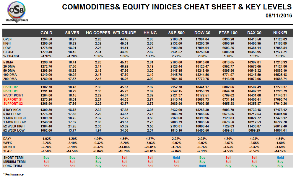 Tuesday, November 08: OSB Commodities & Equity Indices Cheat Sheet & Key Levels
