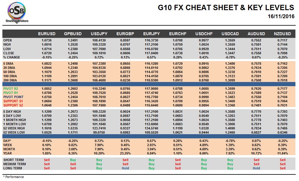 Wednesday, November 16: OSB G10 Currency Pairs Cheat Sheet & Key Levels