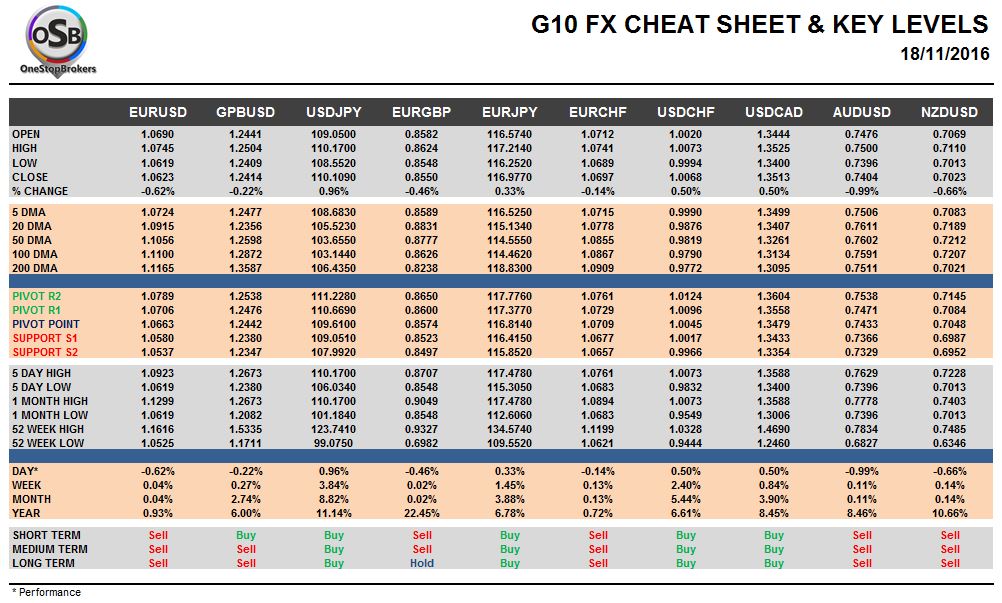 Friday, November 18: OSB G10 Currency Pairs Cheat Sheet & Key Levels